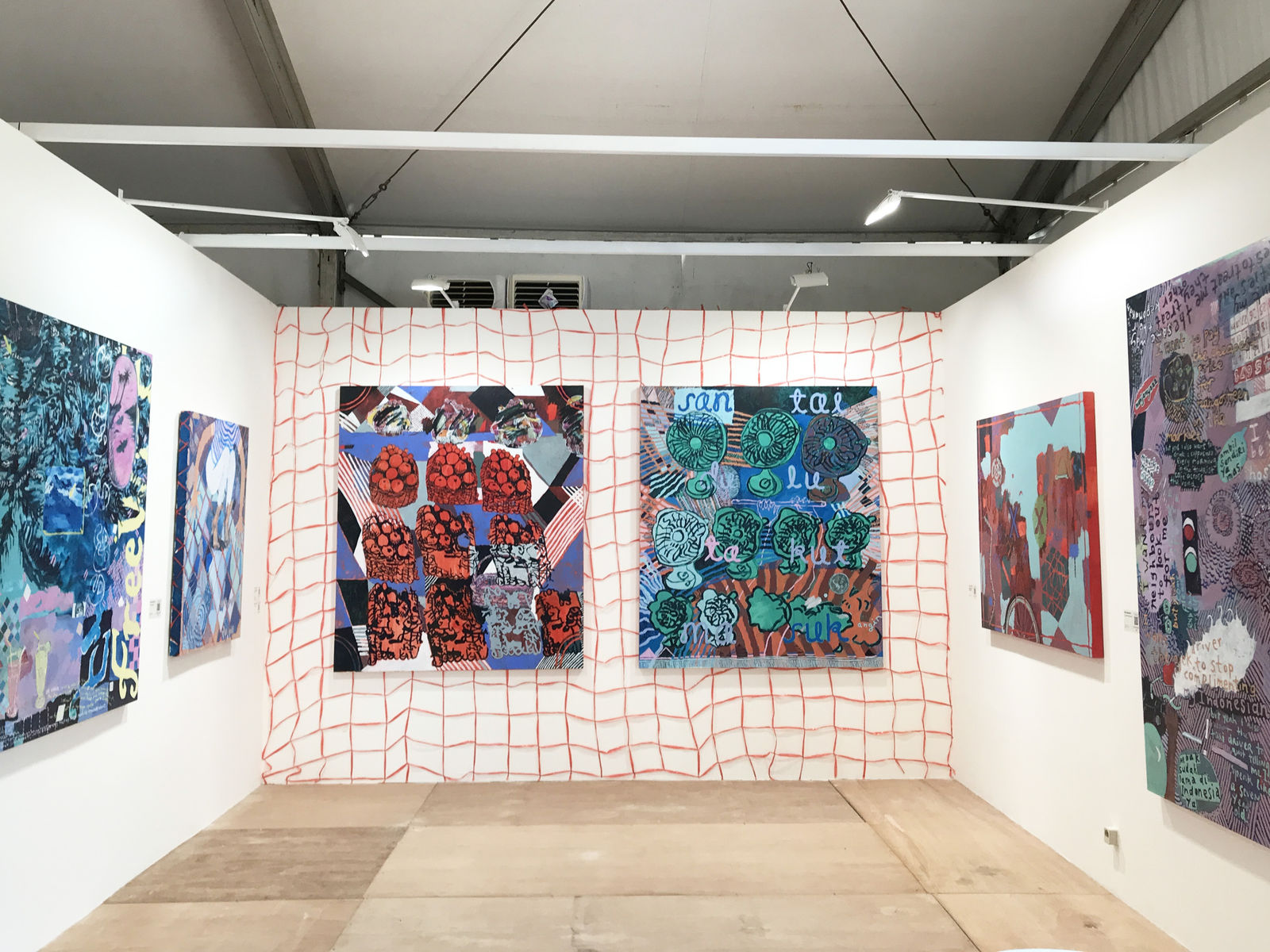 In ‘Fermented Feelings', sharing its name with the series, she talks about a story of bringing fruits as ‘oleh-oleh’ for her family in Java, Indonesia. She uses a lot of imagery of raffia, commonly used to tie up boxes, as the main shape tying the painting. She also explored different textures, mainly driven from salak / snake fruits. Various things in daily life can be seen from a very interesting point in Ida's work.